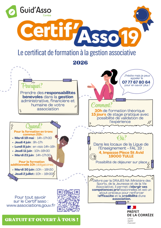 Cette formation est organisée par le réseau Guid’Asso 19, avec plusieurs acteurs associatifs du territoire. Airelle Familles Rurales Correze Profession SPORT Limousin 19-23-87 Mission Locale Tulle Centre Corrèze